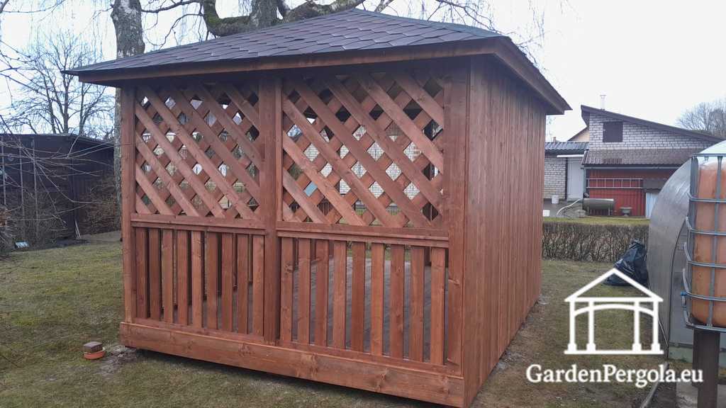Brown Wooden Garden Gazebo with Closed Walls and X-Style Mesh — Privacy Meets Elegant Design