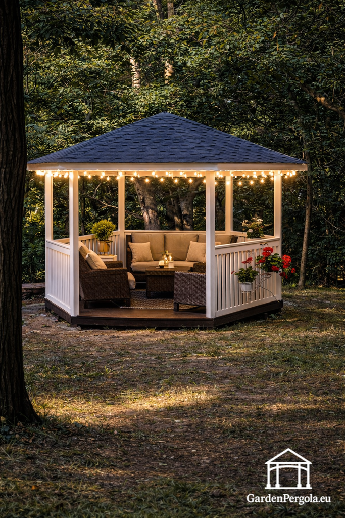 Six-Sided White Garden Gazebo — Perfect Symmetry with Elegant Design