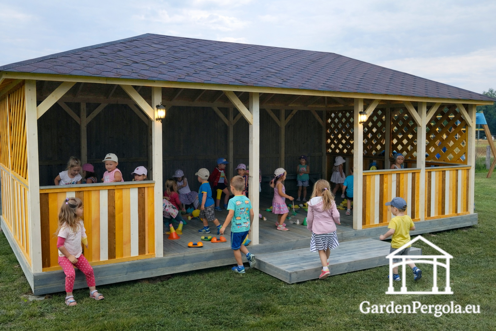 Plaša, droša un pielāgojama — šī bērnudārza lapeņa ir ideāls risinājums, lai radītu aizsargātu un pievilcīgu āra telpu, kur bērni var mācīties, spēlēties un augt.