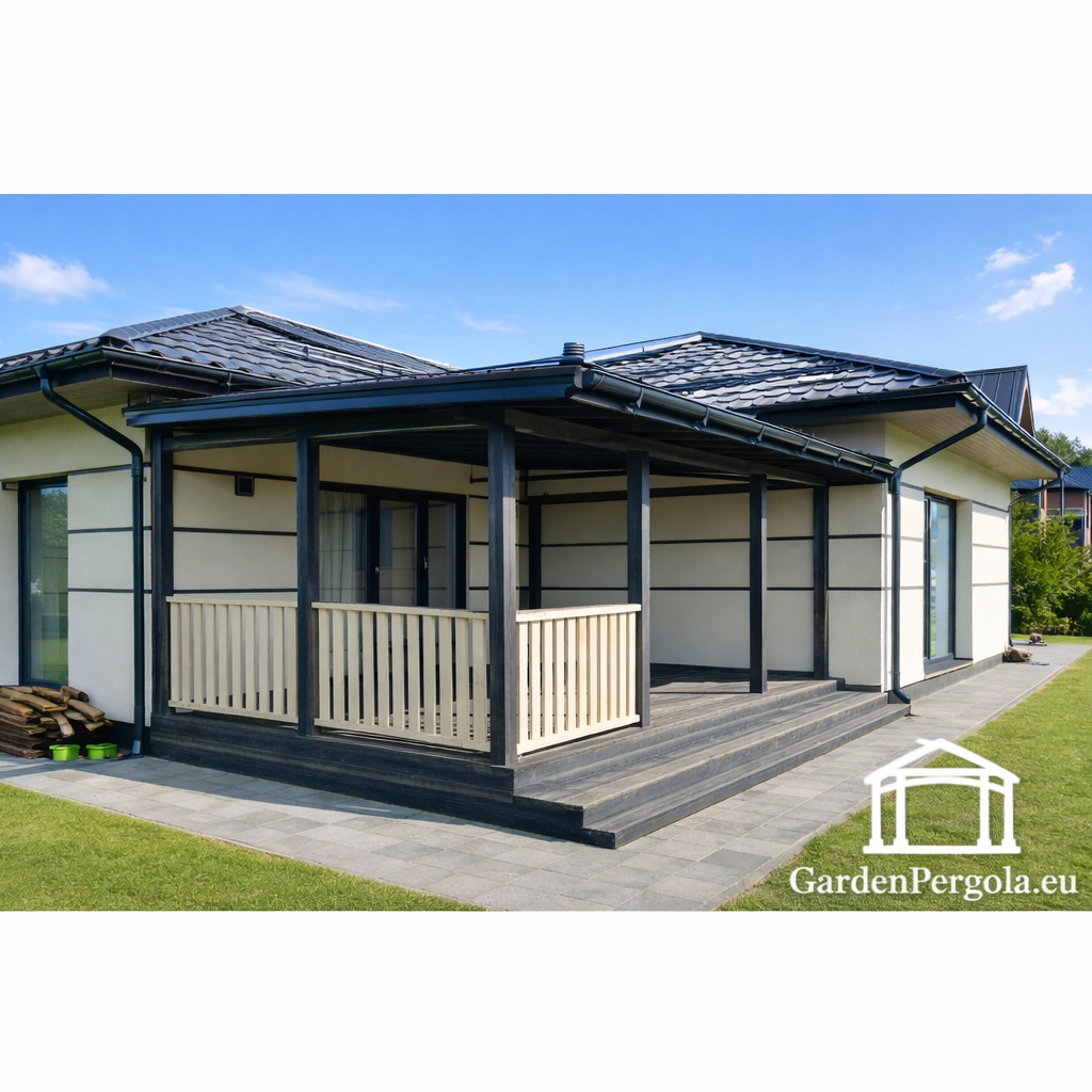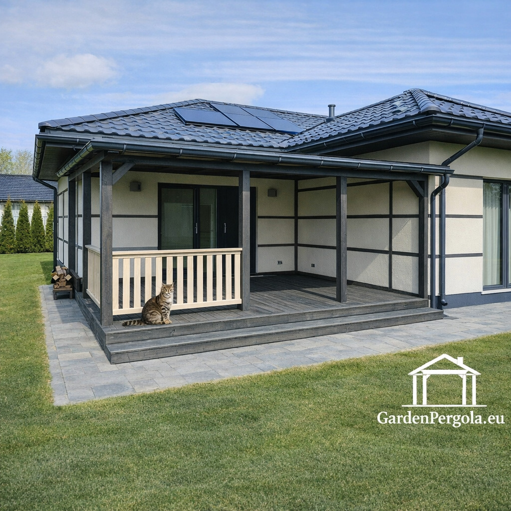 Premium tumši pelēka nojume ar metāla jumtu – izturīga, moderna un pilnībā aprīkota